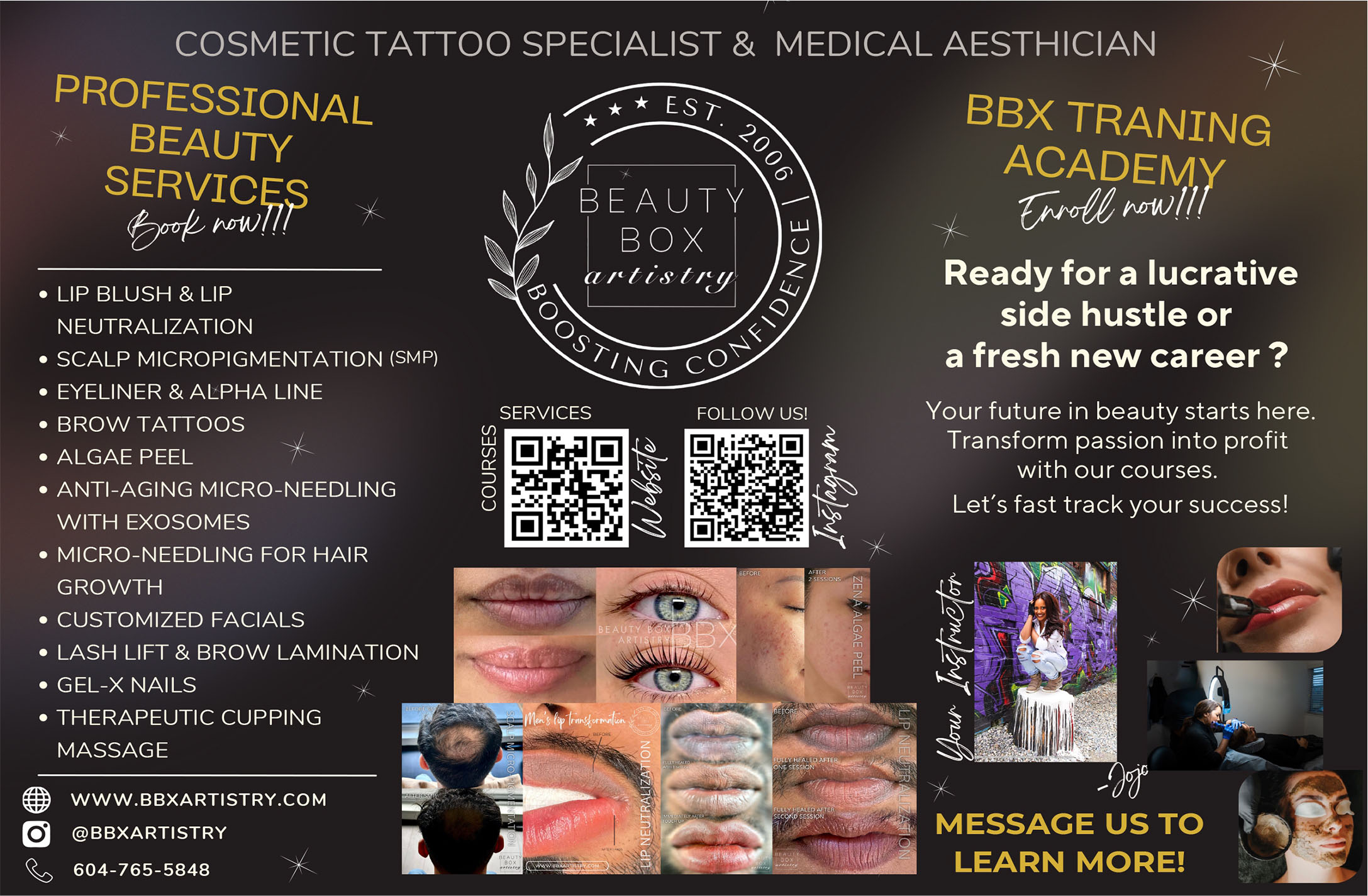 BBXartistry has done my lip blush and corrected my brows done by another artist. I am So happy with her work!! Thank you SO much. You keep making me look so youthful! I highly recommend BBXartistry she is so professional and really educates her clients.